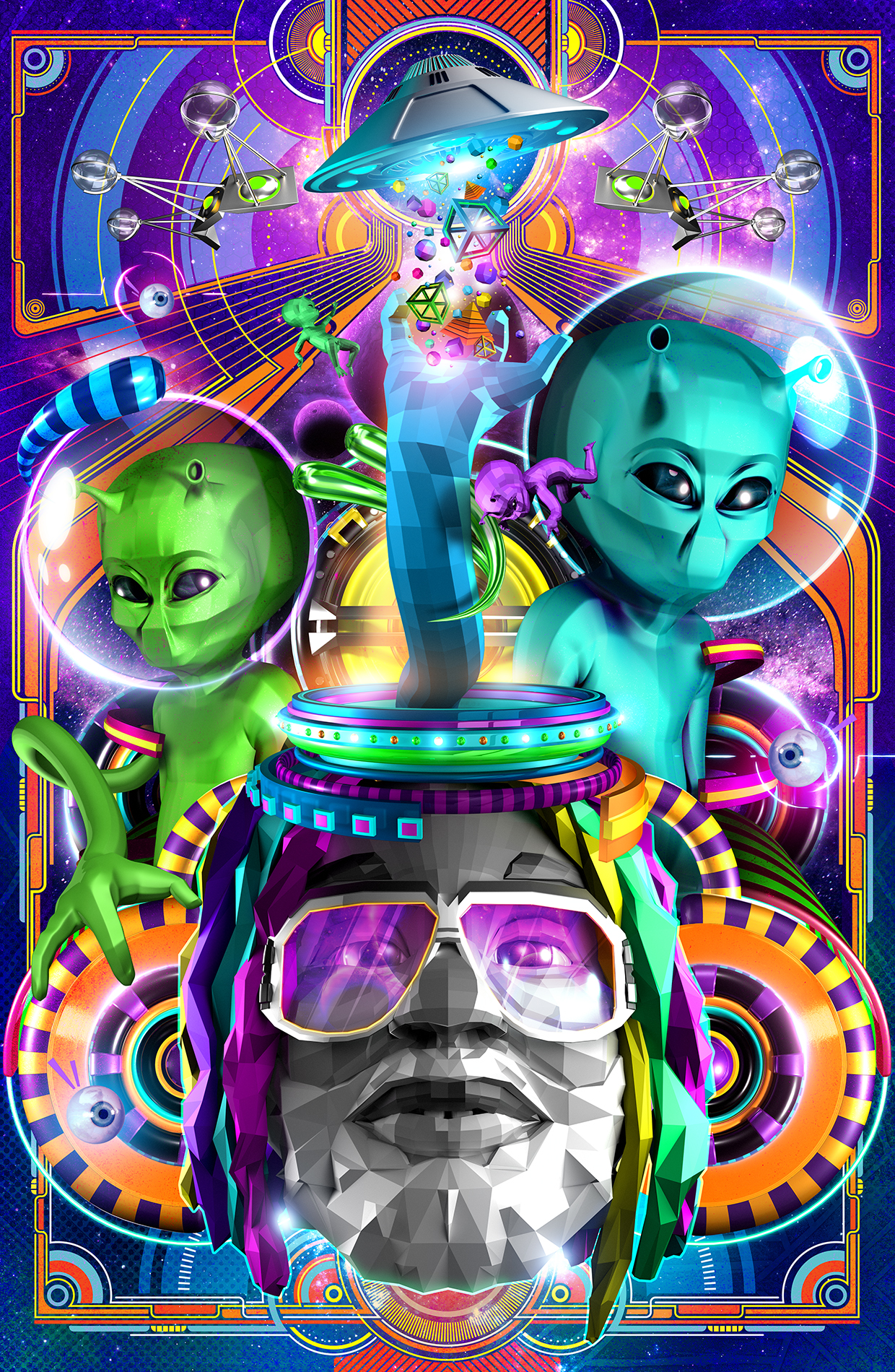 MothershipArtwork for Gallery ShowArtwork by Syndrome Studio celebrating the 40th anniversary of Parliament Funkadelic’s “Mothership” album. VIEW